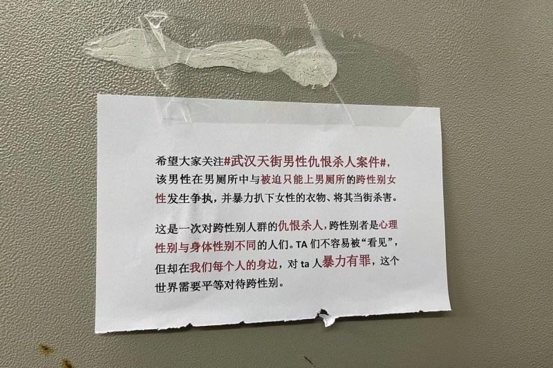 武汉一名跨性别者在商场如厕时遭持刀杀害,当局删微博、封话题打压相关讨论