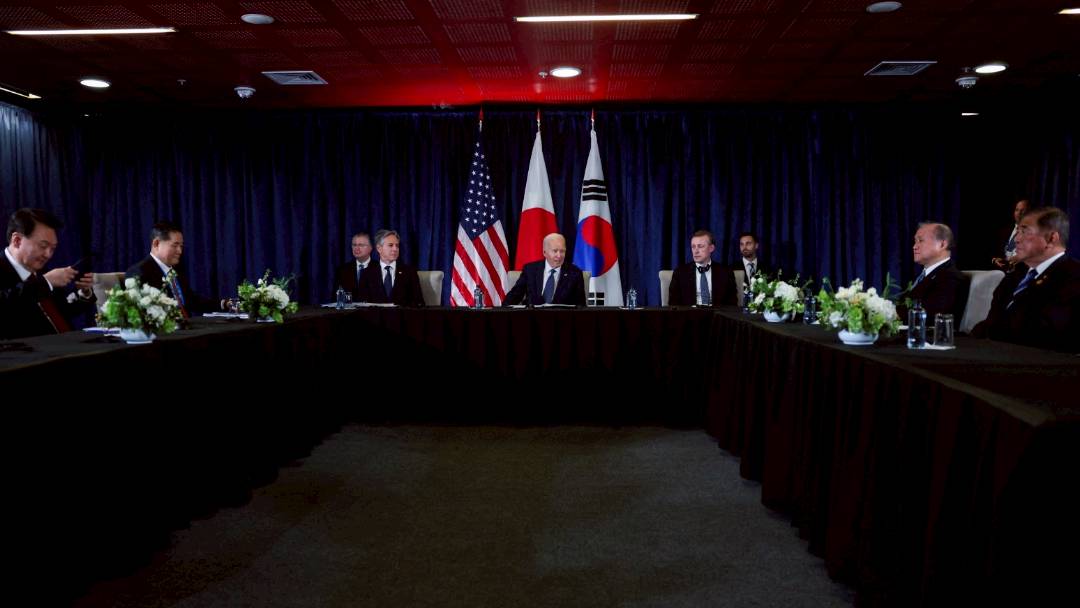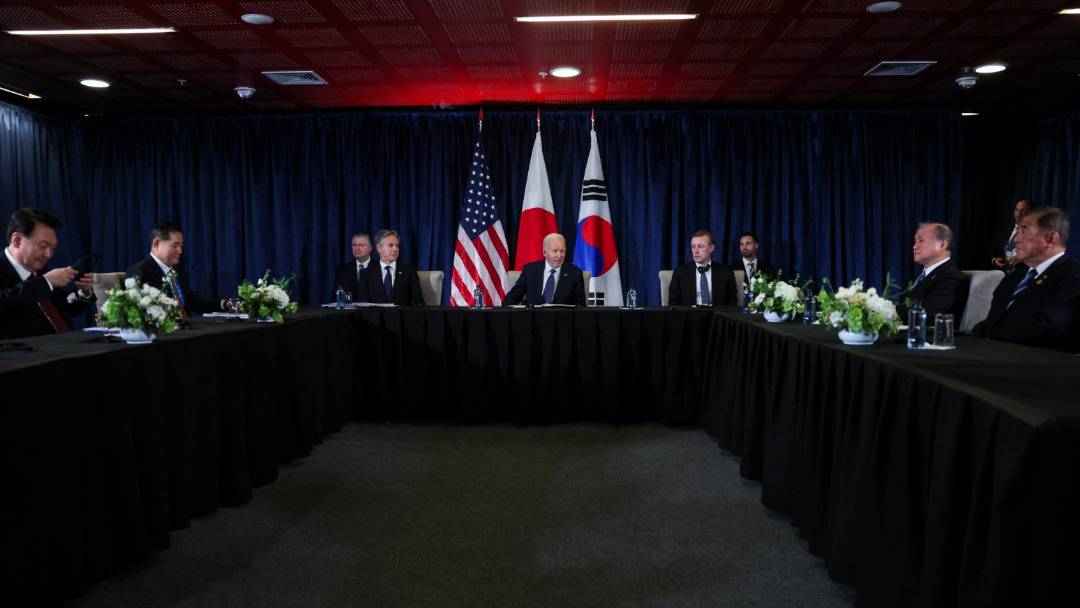 在美日韩领导人三边峰会上,拜登祝贺石破茂担任日本首相,他表示,“这次可能是我最后一次与这个重要小组举行三边会议,但我感到自豪,成为其中一方协助组成这种伙伴关系,我认为它会持续下去”。此前,日本和韩国因历史问题成为宿敌,但在2023年,韩国和日本关系恢复正常。