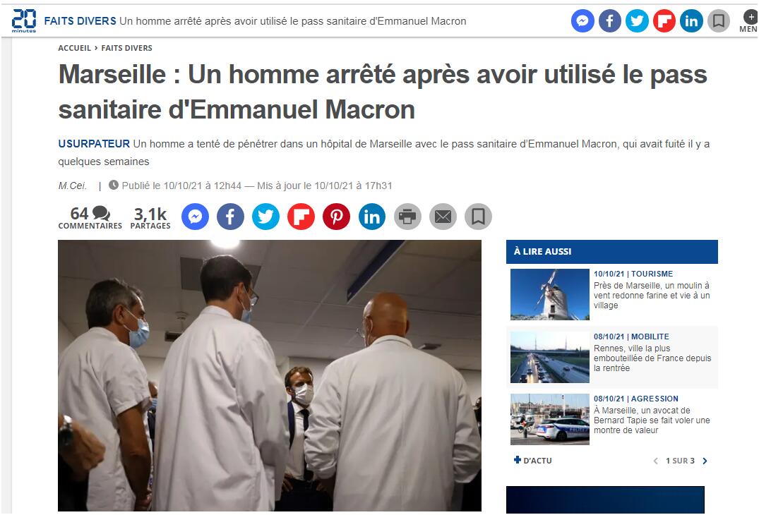 【博闻社】包括法国《20分钟报》网站在内多家外媒10日消息,一名男子因出示法国总统马克龙的健康码进入马赛市一家 […]...