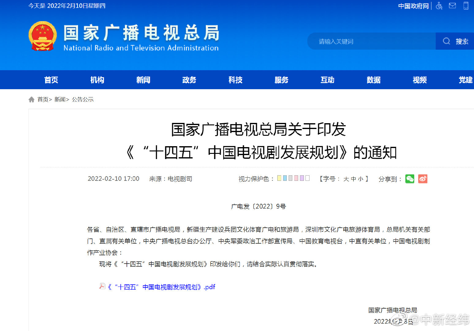 广电总局网站周四刊登规划全文称,强化电视剧领域知识产权全链条保护,增强全行业尊重和保护知识产权的意识。引导电视剧制作机构科学合理安排制作成本结构,加强成本管理和收入核算;规范包括演员片酬在内的收入分配秩序, 推广使用标准化、制度化、制式统一的片酬等劳务合同。